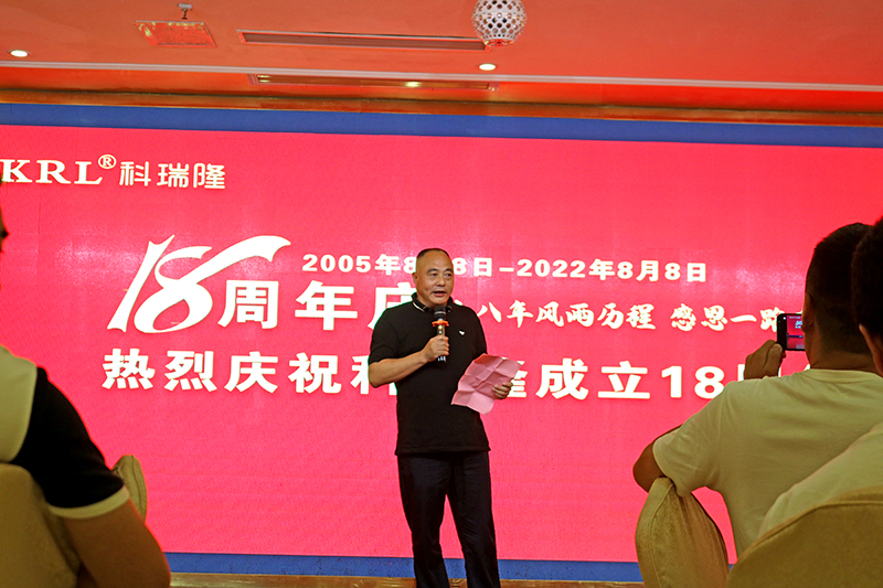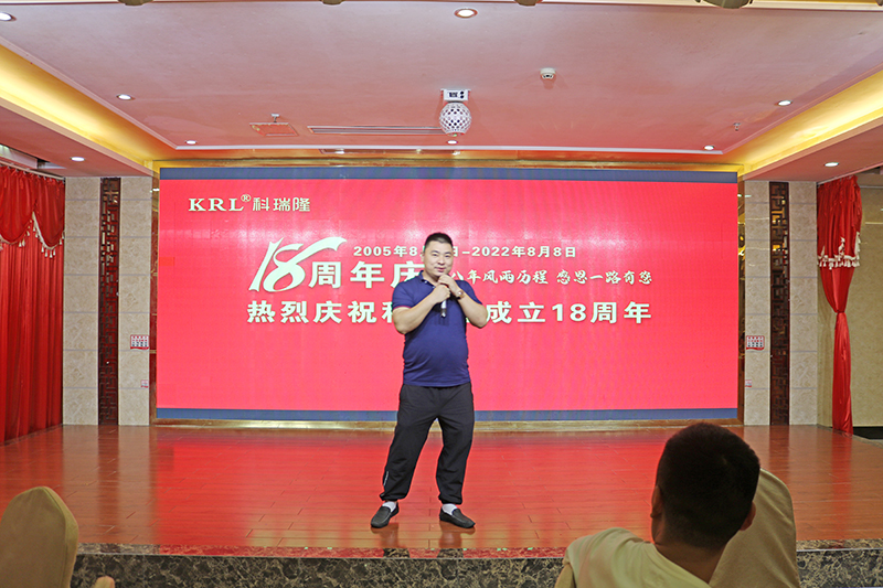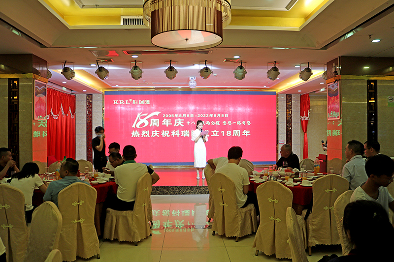 2022年8月8日,科瑞隆18周年慶活動在深圳市龍崗區坪地新瑞昌大酒店隆重舉行,十八年風雨歷程,十八年輝煌,為了感謝黨和國家的好政策及培養員工的家國情懷,活動在雄壯的國歌大合唱中拉開序幕。